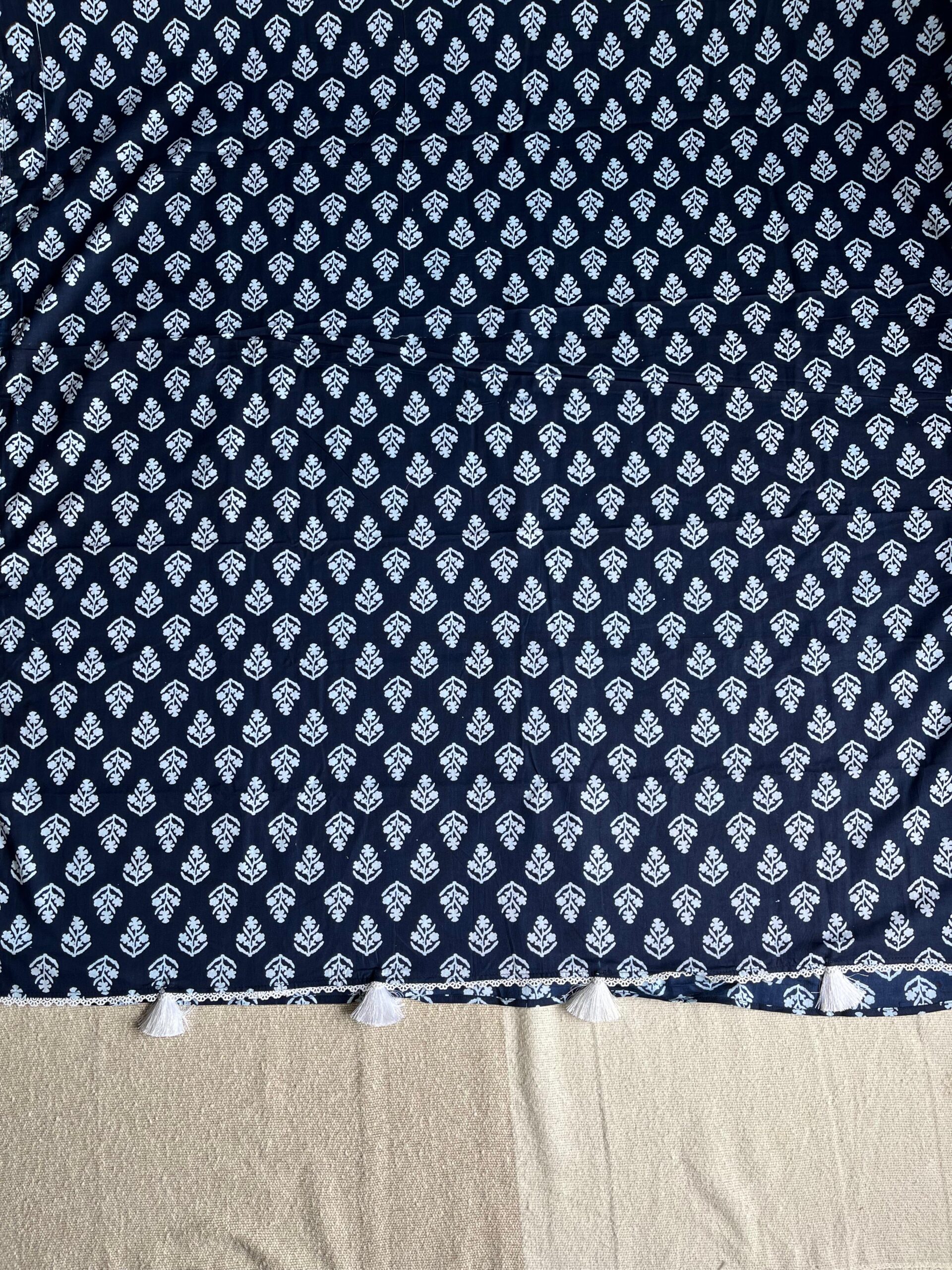 Color: Deep Indigo with lotus block prints