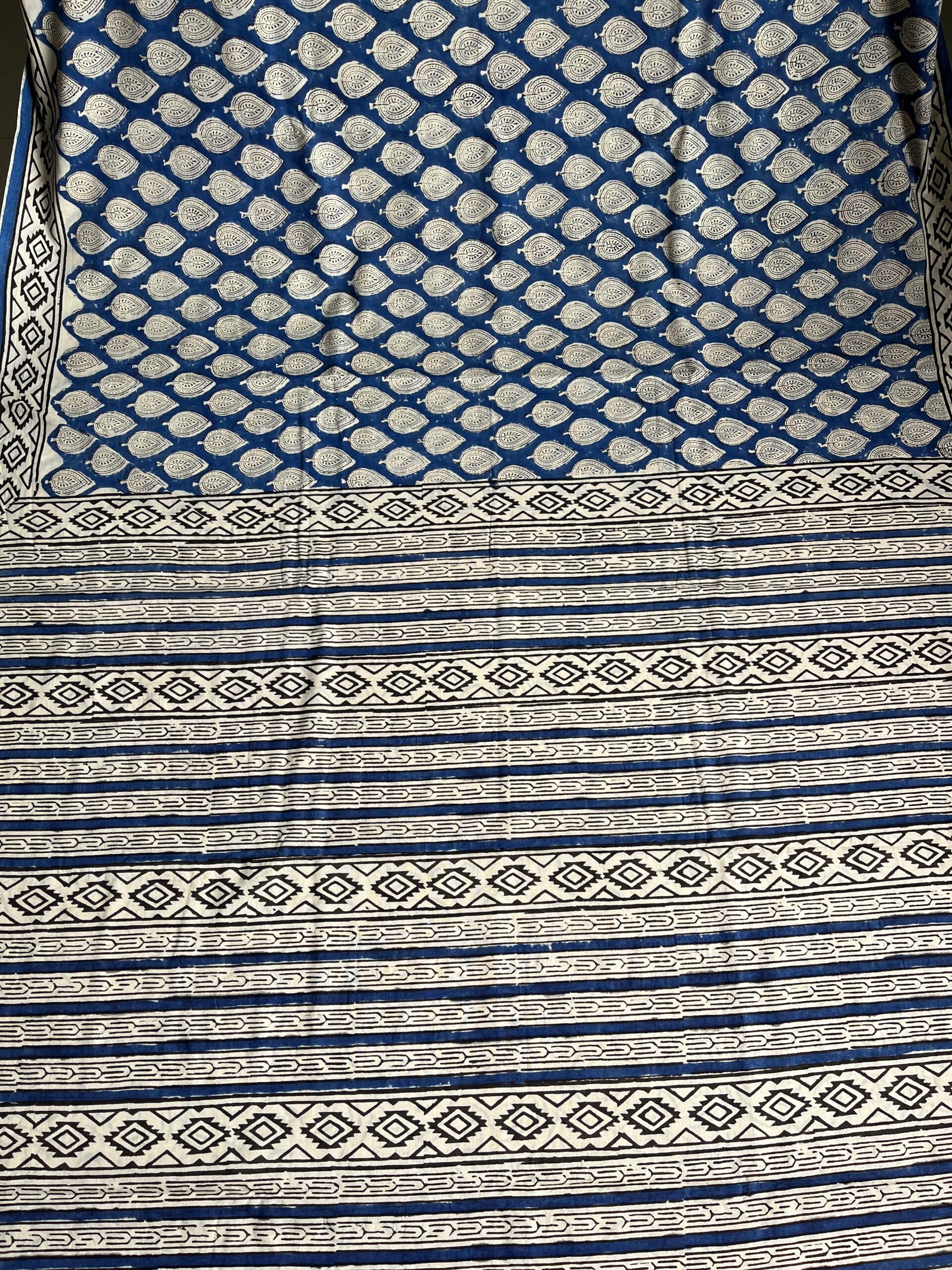 Adorned with intricate leaf motifs in deep indigo, the NeelPatra saree is crafted from breathable mulmul cotton. Its airy texture and timeless design make it ideal for everyday elegance or festive minimalism.